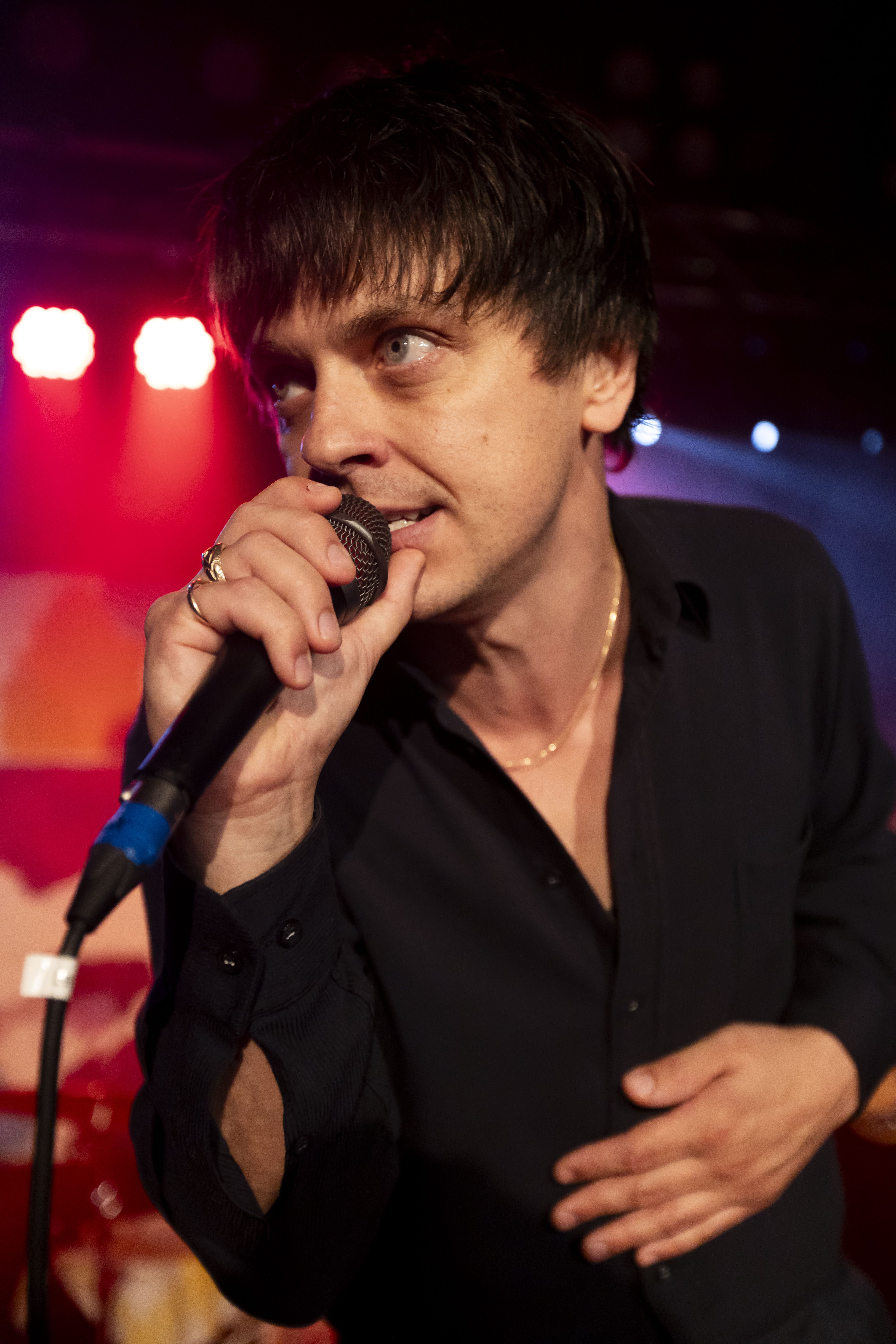 Our evening at the QG music venue in Rouyn-Noranda began with an ethereal trip into the subconscious, guided by Peter Dreams, the latest brainchild of the vocalist from July Talk. This project felt like a comforting déjà vu, where every note played struck a familiar chord in the hearts of those who’ve followed his journey. Peter Dreams was not just a performance—it was an experience of intense expressiveness, where the artist’s body language and facial expressions were as much a part of the music as the sound itself.
