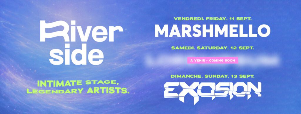 Marshmello and Excision represent two distinct musical worlds and that is exactly what we seek to offer our community bold programming on a stage where every festivalgoer experiences the show up close On the banks of the Ottawa River in one of the most unique settings in the country the 13th edition is a continuation of the growth that has defined Riverside from the very beginning